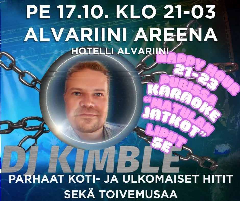 Alvariinissa bileet jatkuu 21-03 alkaen DJ Kimblen soittaessa koko illan hittilistaa ja toivebiisejä Areenan puolella!